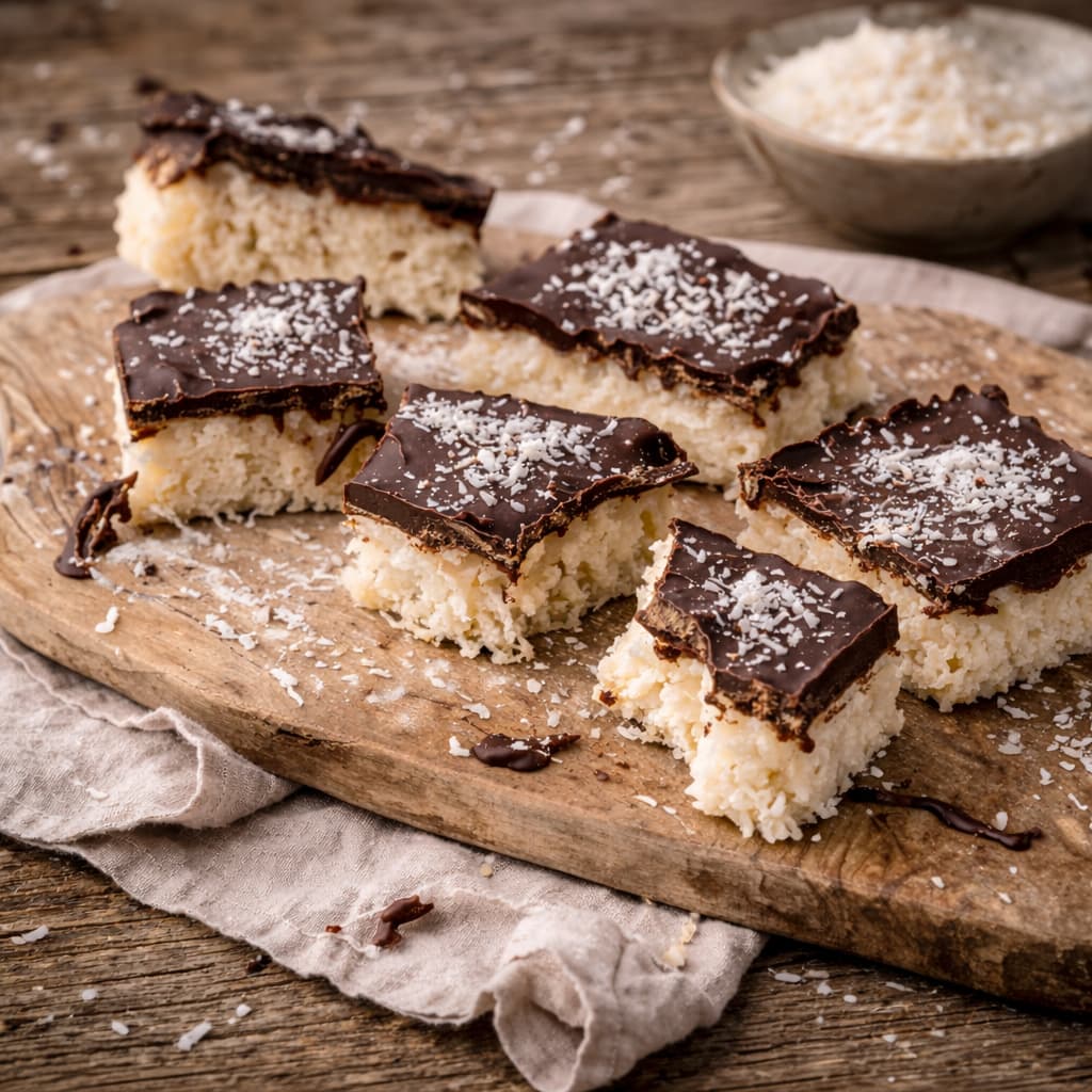 - Verdeel de gesmolten chocolade dun over de bovenkant van de blokjes.